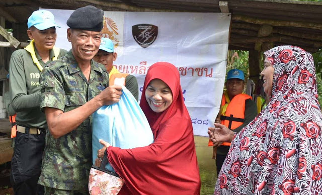 และ บ.โคก จำนวน 25 ครัวเรือนของ ต.จวบ อ.เจาะไอร้อง จ.นราธิวาส เพื่อเป็นขวัญกำลังใจ และดูแลความเป็นอยู่ให้พี่น้องราษฎรนั้นสามารถดำรงชีวิตอยู่ได้ในยามเกิดภัยพิบัติ ส่งผลให้บรรดาพี่น้องราษฎรที่ประสบภัย เกิดความคลายกังวลใจ มีรอยยิ้มมีความประทับใจและปลาบปลื้มใจเป็นอย่างยิ่ง ที่มีหน่วยงานทหาร และส่วนราชการ เข้ามาดูแลมีความห่วงใยช่วยเหลือไม่เคยทอดทิ้ง ปชช.ยามทุกข์ร้อนเมื่อประสบภัยพิบัติ